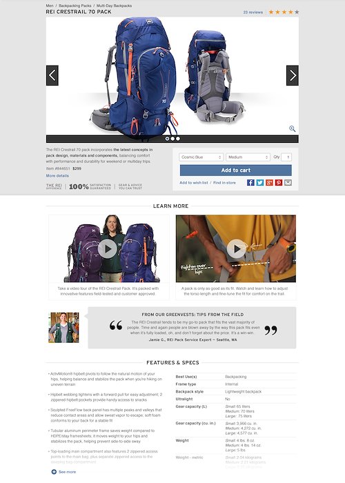 REI Product Page Concepts